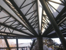 Policarbonatul asigura o buna izolare termica iar structura metalica a copertinei poate fi executata